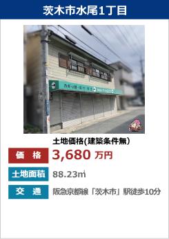 新規物件情報【茨木市水尾1丁目 建築条件無売土地 3,680万円】